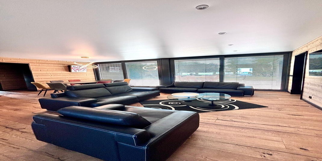 À l'intérieur, découvrez une vaste pièce à vivre lumineuse comprenant une cuisine entièrement équipée (lave-vaisselle, four, réfrigérateur, machine à café, théière, grille-pain) avec un grand îlot central. Le salon-séjour, aménagé dans le même espace, propose une élégante table ronde, un canapé confortable et une cheminée électrique pour une ambiance chaleureuse. Un téléviseur est également à votre disposition pour rester informé ou vous divertir.